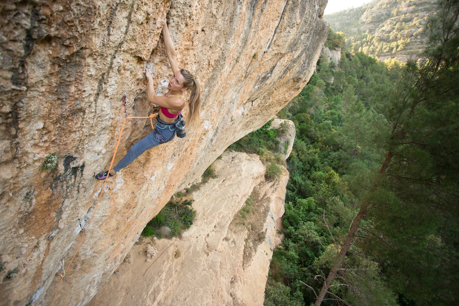 Even in the shade it´s sometimes too hot for climbing but despite the high temperatures I sent the very beautiful line called Esaú (8a+) at Cova Soleiada sector (pictures). It´s 30 meters long and a very logical line through a crack with a big variety of tufas. It took me a lot of work to find the best way through the big supply of holds but finally I sent it with very sweaty fingers, due to high temperatures about 35 degrees. My endurance is getting better and I´m trying to climb longer routes now, after spending a lot of time bouldering at Laboratori sector and it´s really fun to climb a different style now.
