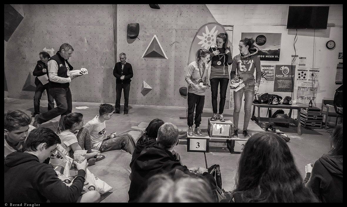 What I really found interesting about my training this season was, that I experienced, that training more is not always better. Since my trainers Lena Herrmann and Ralf Kowalski from the north german climbing Team that I belong to told me to focus more on quality than quantity, I did more project Boulders and a smaller extend of bouldering in general. That was fun, because I had a few cool projects, which I had to try over a few sessions. My Finger, Arm and shoulder Training has been shortened as well so that I do very hard exercises with a complete recovery time of 3 Minutes between repetitions. I found out that it’s much easier for me to do a lot of exercises with short brakes than really waiting so long that I recover between the exercises, but it is totally worth it. I also avoided doing a lot on one day, like bouldering 2 Hours and then doing exercises until my arms where shaking, which is what I liked to do in the past. I found this to be very effective for me personally, I would recommend to any athlete to vary their training and see which effect it has on their performance. A second thing that really helped me was working on my back. Since a few month I had severe Problems with my biceps tendon which became worse and worse until I found out, that the problem started at my lower back, which wasn’t stabilized good enough, which affected my upper back and then my shoulder and finally my biceps tendon. Since I started a proper back training with focus on good posture (what in my opinion is rarely seen in the climbing gyms) I got so much stronger than before. I was able to do some Campus-board moves, which I wasn’t able to do previously, that was another example that training is really about quality and keeping your body healthy. You can train your arms as much as you like but since they are fixed on your back, you can never use all your arm strength with a back problem. So reflect on your training, listen to your body, stay healthy and enjoy.